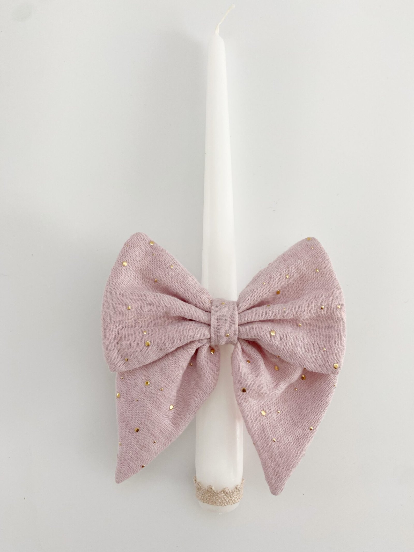Rankų darbo žvakė tinka tiek berniuko, tiek mergaitės krikštynoms.